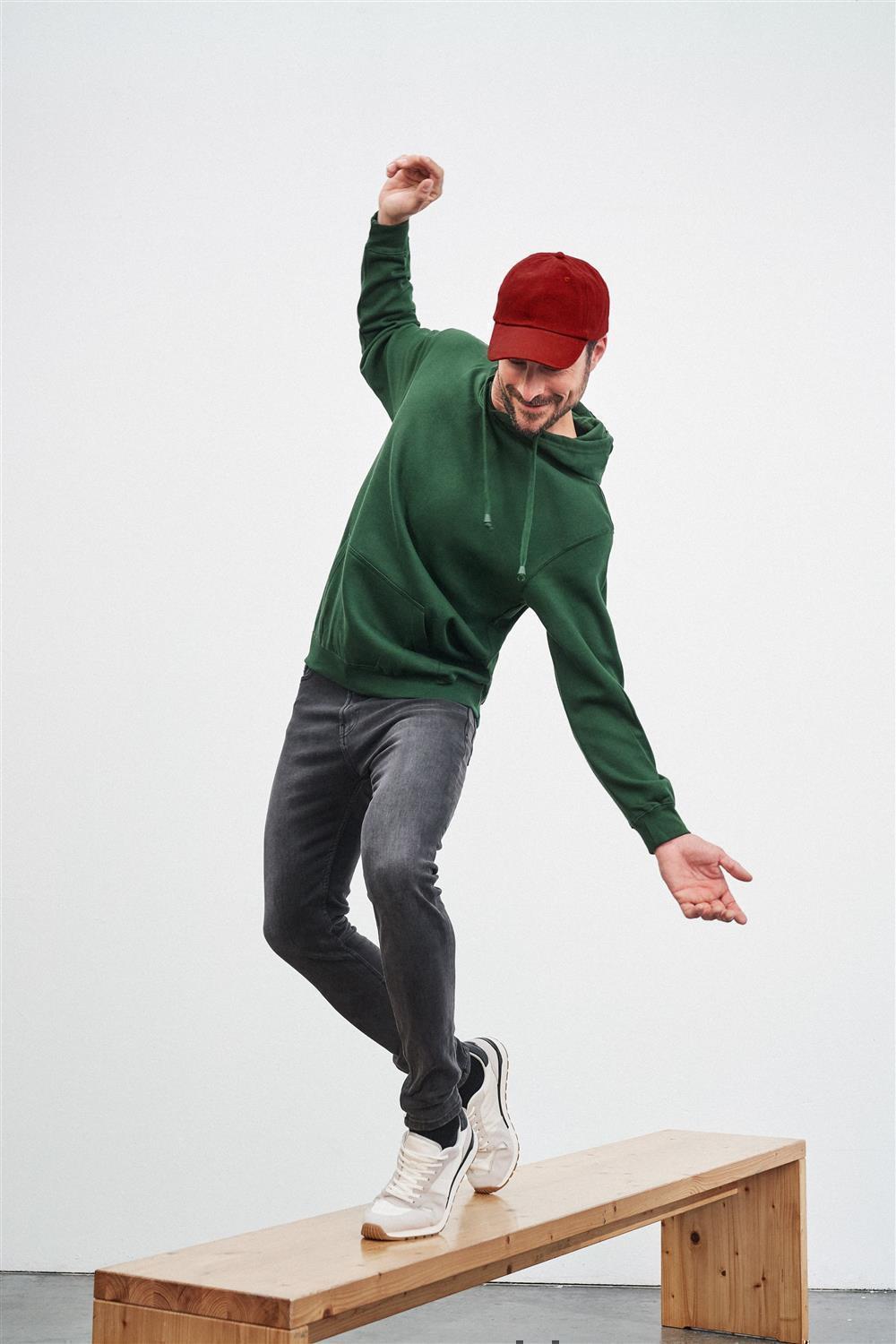 Der JN 47 Kapuzen Sweater von daiber besteht aus einer weichen Baumwollmischung, die für ihre Langlebigkeit und Strapazierfähigkeit bekannt ist. Die sorgfältige Verarbeitung und die robusten Nähte sorgen dafür, dass der Sweater auch nach vielen Wäschen seine Form behält. Die elastischen Bündchen an Ärmeln und Saum bieten zusätzlichen Komfort und eine optimale Passform.
